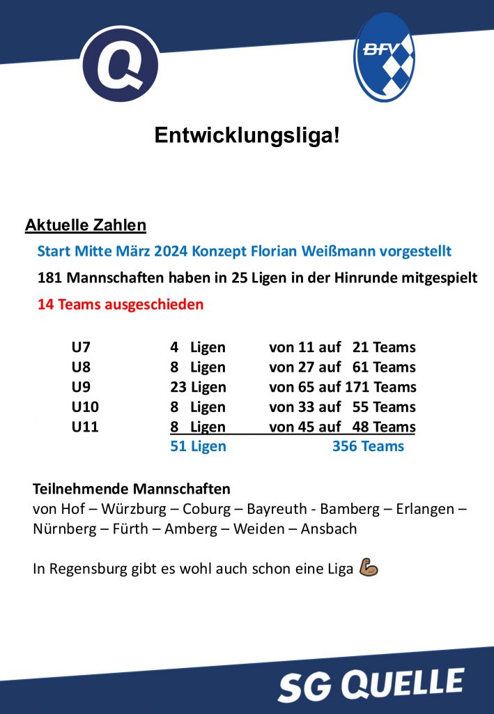 Aktuell haben wir folgende Entwicklungsliga Gruppen für Unterfranken.